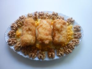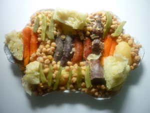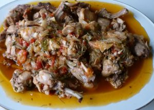 Este guiso se puede elaborar con gallina o con pollo y se cocina con su jugo, enriquecido con almendras molidas, yemas de huevo duro y pimienta (ingrediente que da nombre a la elaboración piper-pimienta), Plato de raíces árabes…..