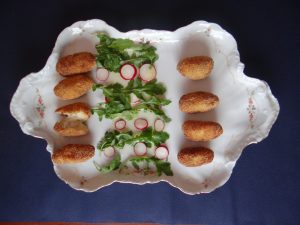 La croqueta aunque es un plato de origen francés es típico de la cocina madrileña, donde se pueden encontrar tanto en bares y tabernas como en restaurantes de lujo…..