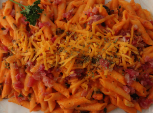 Macarrones con tomate y aceitunas negras