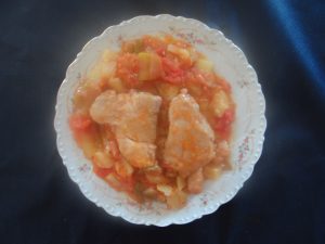 Las supremas de bonito se frien ligeramente y luego se terminan de hacer junto con el pisto