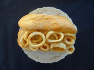 La afición por la tapa y las raciones de calamares es constante. Los calamares a la romana es uno de los platos más populares y representativos en bares y restaurantes de Madrid, se presenta muchas veces en raciones o en bocadillos.