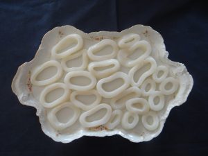- Se Lavan los calamares bajo el grifo con agua fría y se secan con papel absorbente.