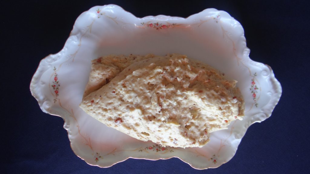 - Se retiran del frigorífico 48 g. de mantequilla y se dejan atemperar hasta coseguir una textura en punto de pomada (estado intermedio entre la mantequilla sólida y la mantequilla líquida).