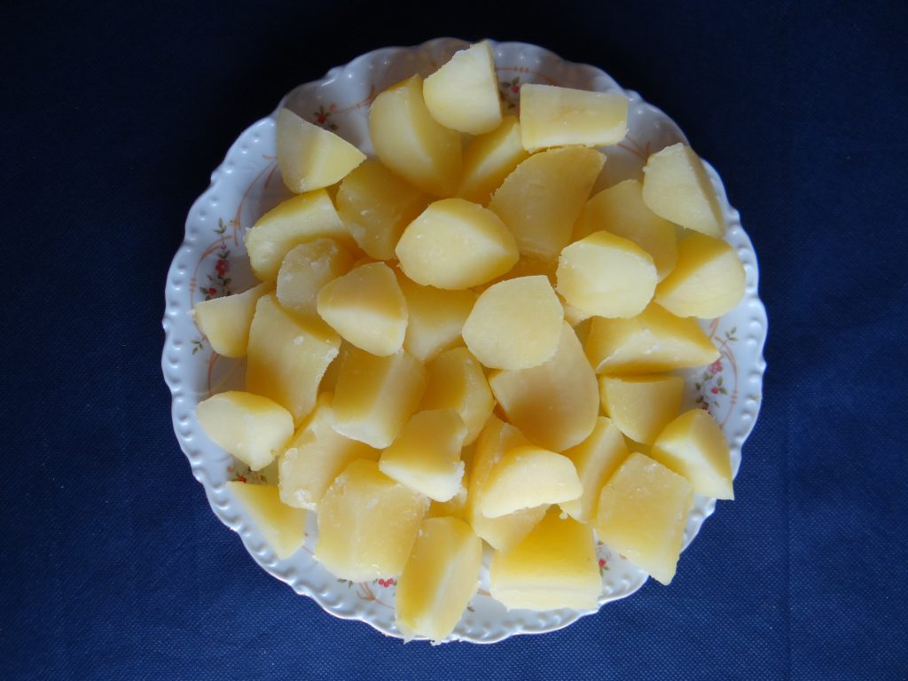 - Se lavan con su piel bajo el grifo con agua fría para quitarles la tierra 1 kg. de patatas.
