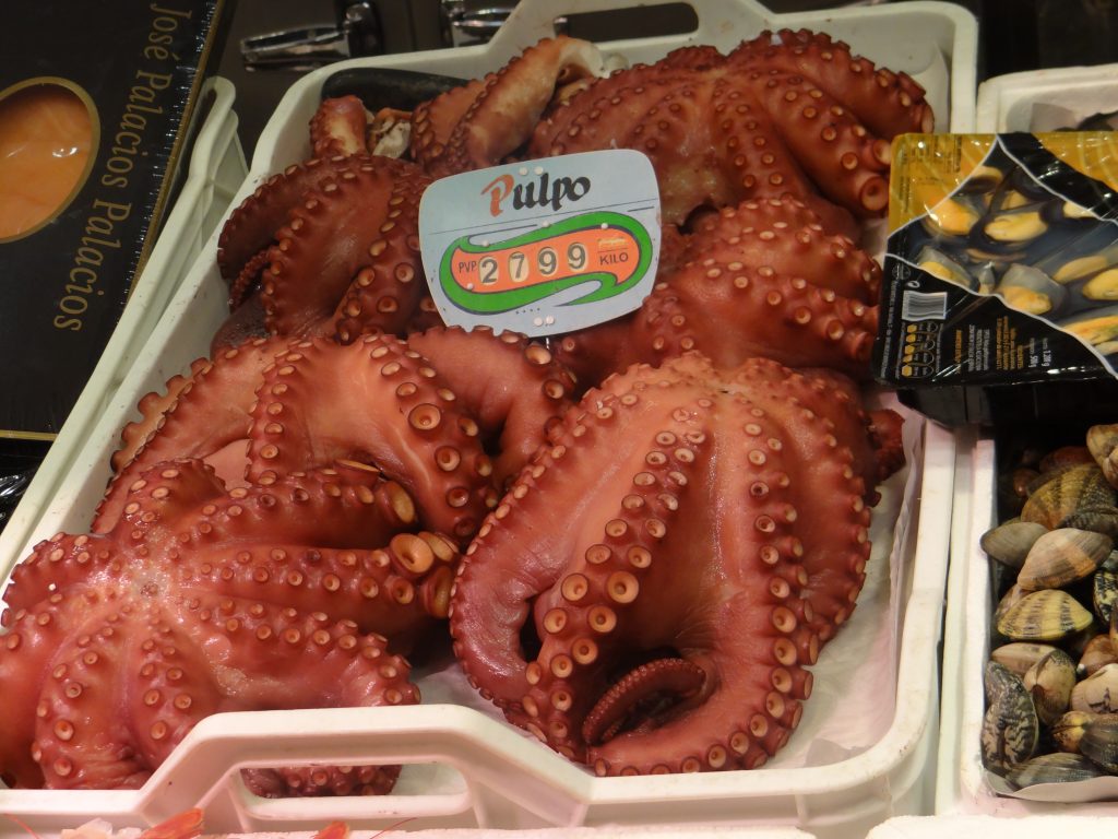 La pesca es el sector alimentario más importante en Galicia y el pulpo es el principal protagonista gastronómico, lo encontramos en sus fiestas populares como las fiestas del pulpo de O Carballiño, Mugardos, Palmeira, Illa de Arousa, etc. El marisco gallego es de excelente calidad, único en el mundo, cigalas, centollos, nécoras, almejas, vieiras, ostras, y los percebes del litoral rocoso y escarpado de Costa da Morte y de la costa norte de La Coruña. Los pescados gallegos tienen una calidad superior, besugos, rapes, merluzas, bonitos, sardinas, anchoas, etc., sin olvidarnos de las rías, que proporcionan almejas, mejillones, percebes, almejas, etc cultivados en bateas.