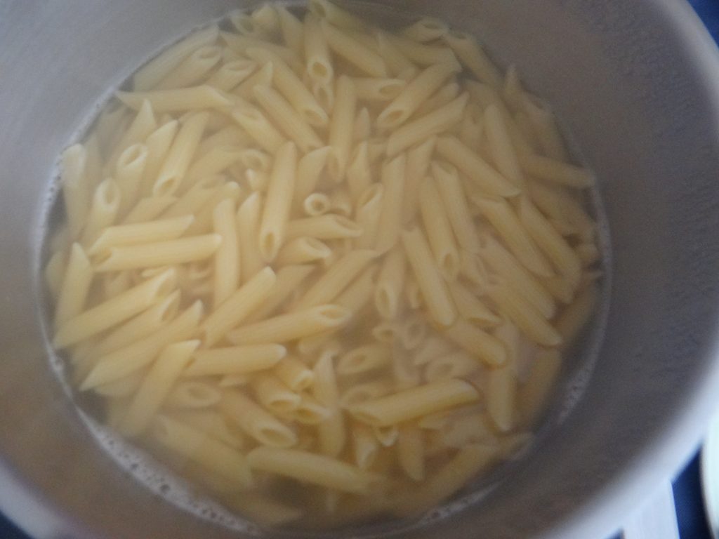 Se pone en el fuego una cacerola con 2 l. de agua fría y cuando comience a hervir se echa ½ g. de sal gorda y se mezcla con el agua, se añaden poco a poco 400 g. de macarrones, moviéndolos despacio para que floten en el agua, se dejan hervir durante 20 minutos, hasta que estén al dente (tiernos y que al morderlos ofrezcan una suave resistencia), se retiran del fuego y se les quita el agua dejándolos escurrir.