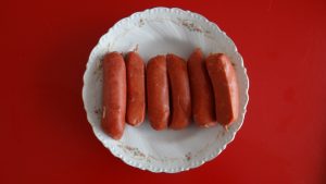 Las rodajas de los chorizos al cortarlas han de ser de parecido grosor