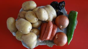 - Se pelan y se cortan en cascos o en cuartos 2 kg. de patatas.