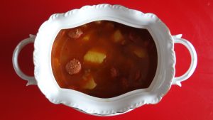 Plato riojano de los más característicos de la región, que elaboraban los trabajadores del campo para recuperar fuerzas tras la dura jornada.
